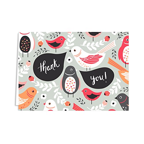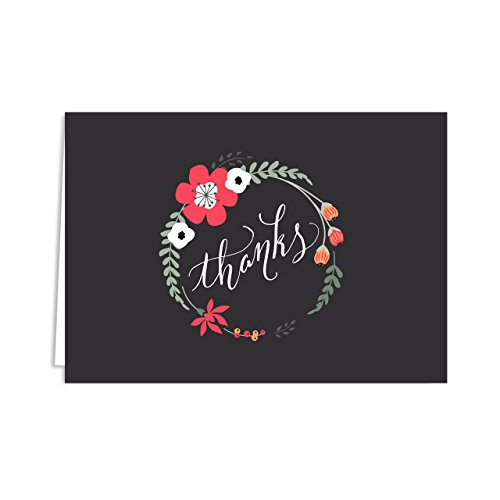 Floral Print Thank You Note Card Assortment Pack - Set of 36 cards - 6 of each design, blank inside - with envelopes