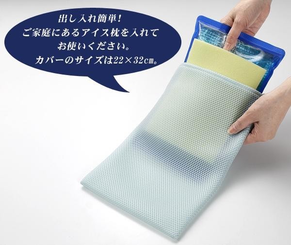 立体構造の生地を使用しているため、表面から感じる温度を適温に保ちます。カバーをすることで、水滴で頭が濡れるのを防ぎます。枕が濡れにくいスポンジ付き。 |