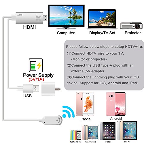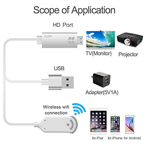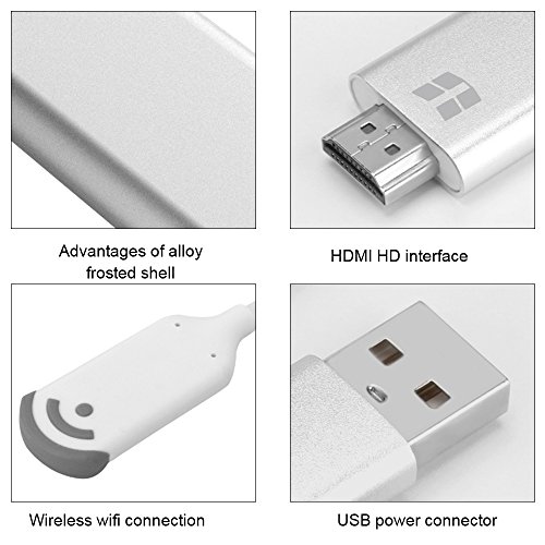 Studio : GOXMGO Publisher : GOXMGO Binding : Kitchen Product Description The wireless display dongle can transfer multimedia (Images, Audio, Video, Games) from your iOS/ Android smartphones and tablets, Windows/ MacOS PC to large screen TV, monitor or projector via WiFi connection.? With this product, you can share high resolution movies or games with your friends and families easily. Perfect for games, business and school presentation (PowerPoint, Excel, Word, PDF and Pictures from your smart phone, tablet, laptop to HDTV and Projector. Notice:? --No App download needed, no need connect to your phone by USB cables. There is a mode switch key on the adapter, you can switch between iOS and Android easily.? --Make sure our cable can support the apps you want to mirror! Due to the copyright protection (HDCP), public sharing of the contents on the screen may be prohibited by some video service providers (such as Netflix, Amazon video, HULU).? --Make sure the power you supply are 5V/1A or above,otherwise it will not work. Only support 2.4GHz WiFi hotspot, not support 5.0GHz WiFi hotspot.? --Please check your TV/ Monitor/ Projector whether with HDMI port on first before you purchase this item. Package Including:? 1 x HDMI Miracast Adapter? 1 x User Manual