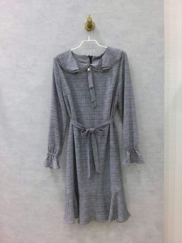 플랫 라운드넥이 참 예쁜 신상 체크 원피스인데요..여리여리한 핏으로 벌써부터 반응좋아요..