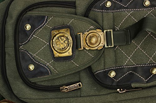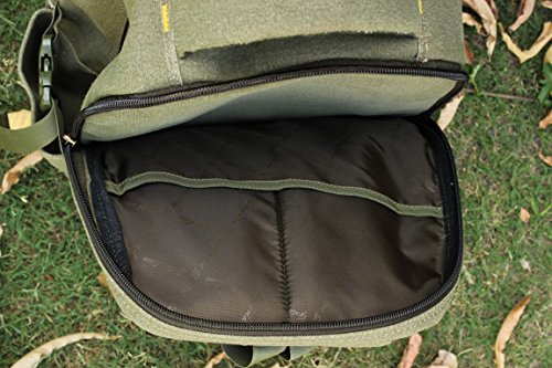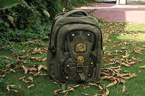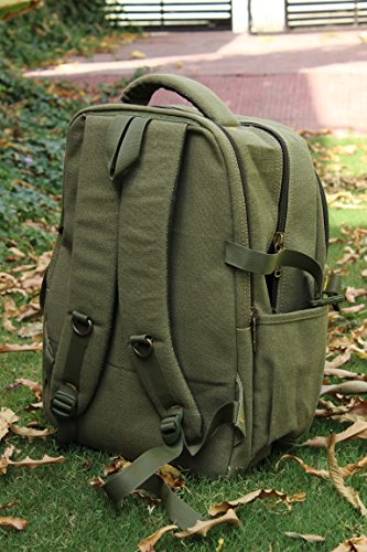 -. Feature : Material:canvas and Genuine Cow Leather / Size:16.5"(H)x11"(L)x6.3"(D) / Large capacity, the main pocket fits 17 inch laptop and A4 magazines, while the inside laptop compartment fits 15" ones / Canvas Leather Backpack/ Rucksack for hiking, camping, traveling; It is also a perfect school /office bag for men, women, teens, girls, boys, college students / color:Army green