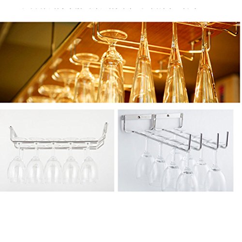 Product Description Durable construction. Great for Home Bar. Easy Mounting. Single row. Low price, great quality. Great for organizing stemware. Attention: Mounted screws are not included here. Glasses are also not included here. 0