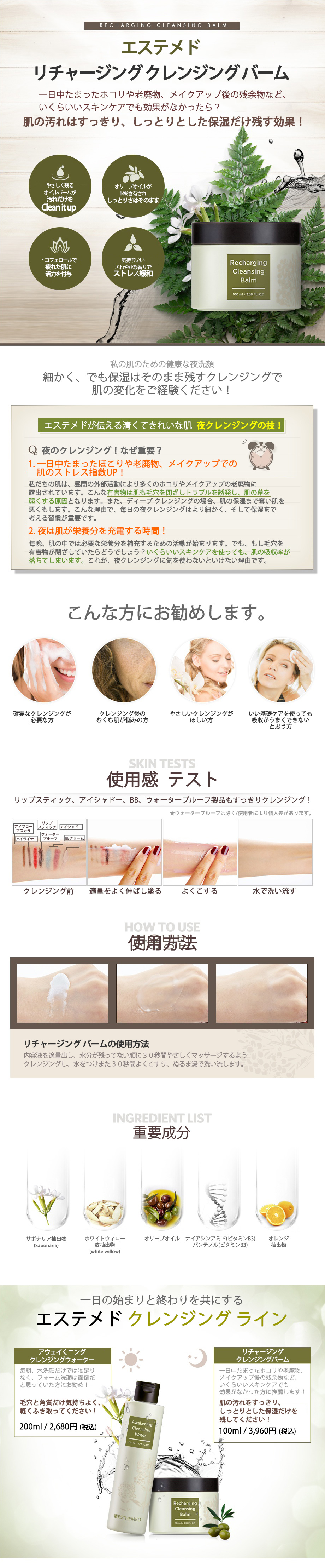 ESTHEMED エステメドリチャージング クレンジング バーム 100ml ESTHEMED RECHARGING CLEANSING BALM |