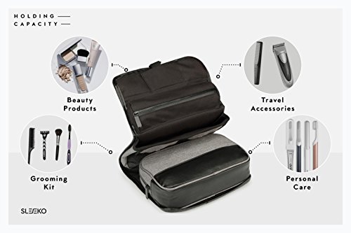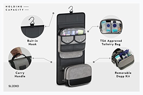 Product Description STAY STYLISH AND ORGANIZED WITH A TRULY HEAD TURNING TOILETRY BAG Neaten Things Up No more desperately rummaging through your luggage to trace that toothbrush! The SLEEKO hanging travel toiletry bag allows you to neatly store your bathroom essentials for hassle-free access. But this isn't just any toiletries travel bag, it's the most organized one there is! We've fitted it with multiple compartments from mesh sleeves, zippered compartments, buttoned pockets, to a removal dopp kit. Whether you're looking to travel light or moving house, this toilet case brings on the functionality to suit the task. Jet Set with a Stress-Free Mindset Looking for the perfect toiletries bag to take with you on your next airplane trip? Well, we've designed our toiletries kit to make checking in at the airport as hitch-free and as quick as it can be! The compact dimensions of our travel kit bag allow you to comfortably fit it into your carry-on to avoid extra charges, and it even comes with a TSA compliant clear bag for holding your travel-sized liquid toiletries. So no more dumping out your entire luggage at that security checkpoint! Here's what sets this hanging toiletries bag apart from the rest: - The Beautiful design lends a professional and stylish look to your travels. - Designed with premium materials and great attention to detail. - Dopp bag can be easily detached when you want to travel light. - Ample space makes it great for home bathroom storage and organization. - Comes with a hidden zippered pocket for discreet storage. Treat yourself to the roomiest hanging travel organizer that blends head-turning aesthetics with unrivaled functionality. Click 'Add to Cart' now! 0 |