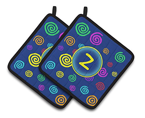 Caroline's Treasures Letter Z Initial Monogram - Blue Swirls Pair of Pot Holders CJ1011-ZPTHD, 7.5HX7.5W, Multicolor