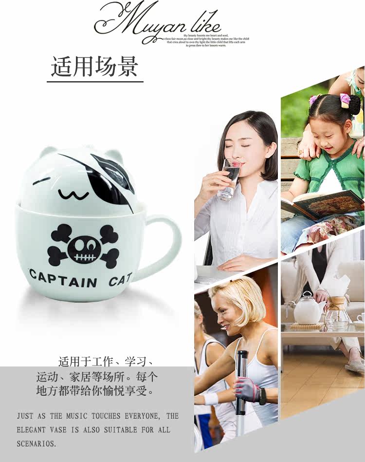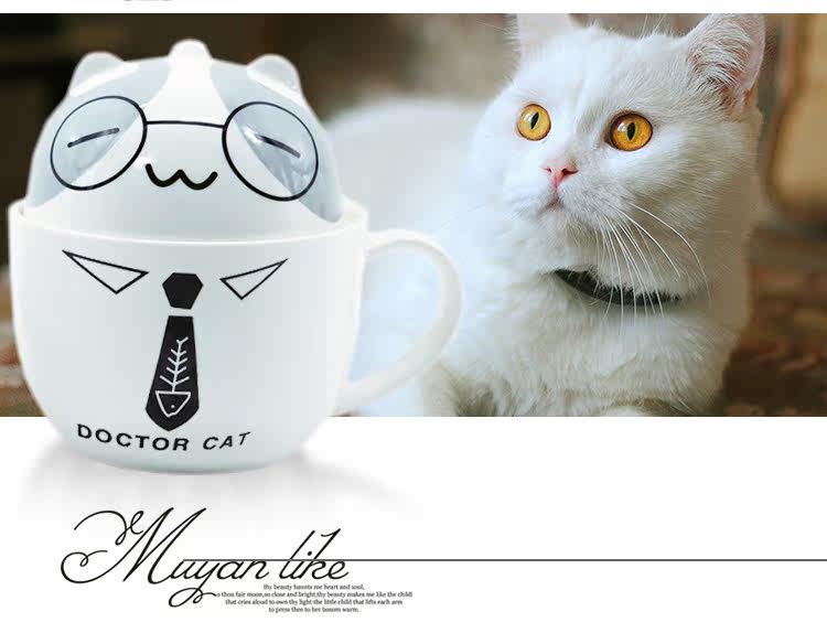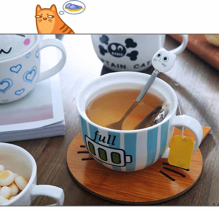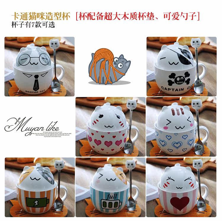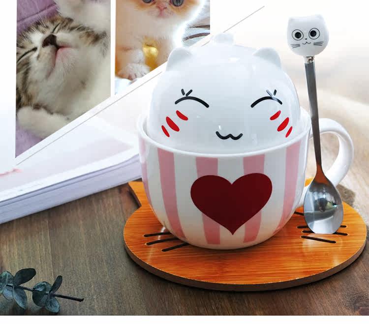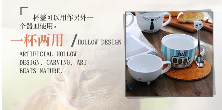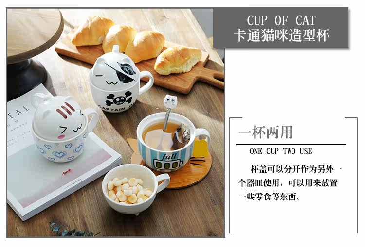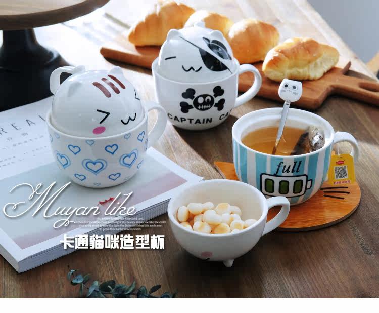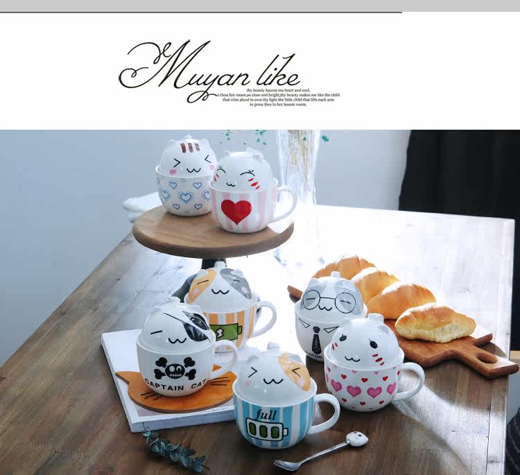 可爱陶瓷马克杯情侣杯子咖啡杯早餐杯带盖带勺创意牛奶杯简约水杯
