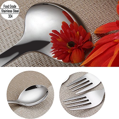 DURABLE MATERIAL: This dinning utensil set is made of high grade 18/8 stainless steel which makes the flatware more durable (does not bend easily) and more rust-resistant compared to 18/0 stainless steel