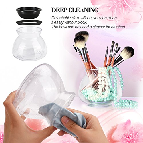 - Fast Clean & Dry -- No longer a Big Deal to clean your brushes! Eight different sizes of rubber holders fits all makeup brushes perfectly. Rotated by 360 degree to Clean and Dry brushes within 5-10 seconds and save your time and money.