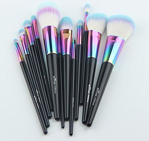 New Makeup Brushes Big 12 Pcs Set Rainbow Spectrum Anmor Siren Metallic Professional Brush Sets For Powder, Blush, Foundation, Concealer, Eyeliner,...