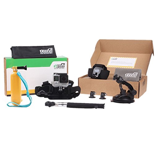 EEEKit Outdoor Sports Accessory Kit for DBPOWER Action Camera APEMAN/AKASO EK7000/SOOCOO Sports Camera, Head Strap,Floaty Grip,Selfie Stick,Chest Harness/Car Mount