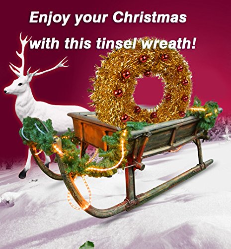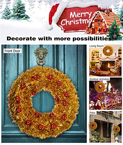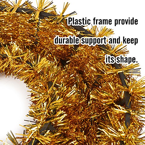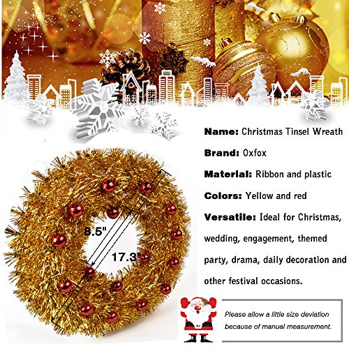 Oxfox Christmas Tinsel Wreath Garland Decoration Door Wall Hanging Party Accessory Wedding Holiday Yellow