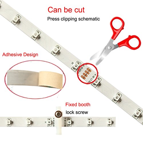 EASY AND FLEXIBLE INSTALLATION: Mount end-to-end for bendable or angled patterns, or in continuous rows. 3M adhesive tape backing can be fit on any dry and flat surface, led strip light can be cut between every 6 leds without damaging the rest strips
