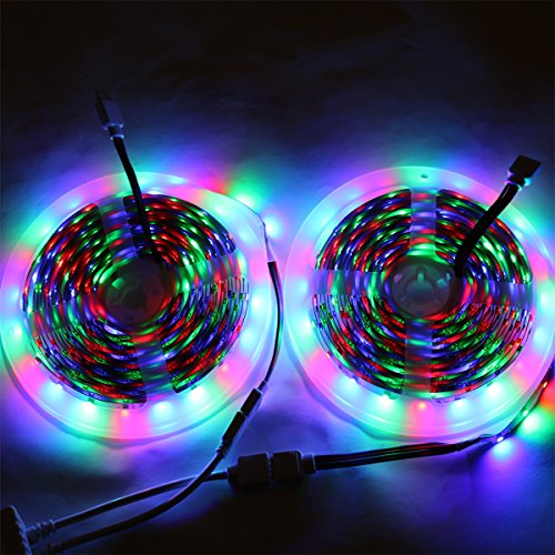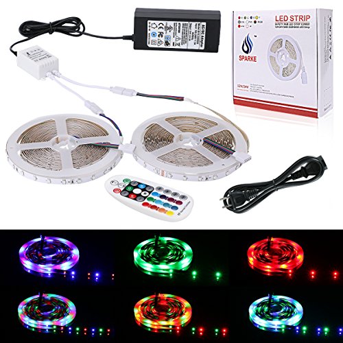 SPARKE 3528 RGB LED Strip Light 10meter/32.8feet 600 LED 60LEDS/meter Non-Waterproof IP20 LED Light Strip 2 Reels 28 Key RF Remote Controller DC 24V 2A UL Listed Power Adapter
