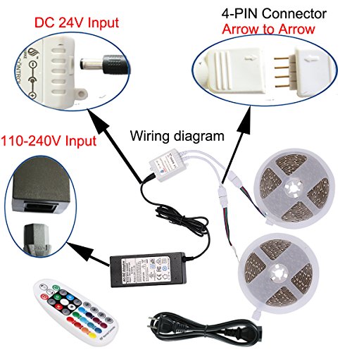 INCLUDES - It comes with 32.8ft(2 rolls x16.4ft)high quality LED strip light kit, New 28 key RF Remote Controller, A 24V/2Apower adapter. We provide friendly and easy-to-reach support.