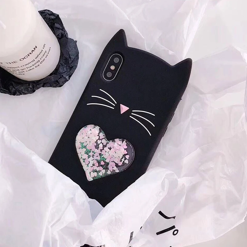 Type:3D Cartoon Smile Black Cat Case For iphone X 8 7 6 6s plus