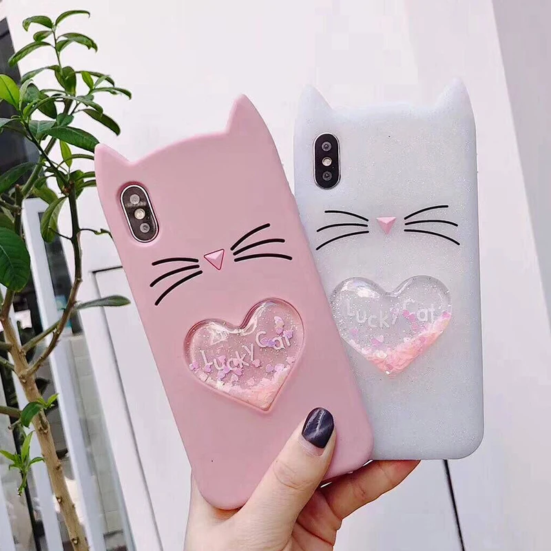 Shipping:3D Cartoon Beard Cat Case For iphone X 8 7 6 6s plus
