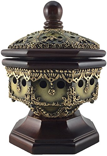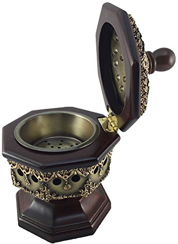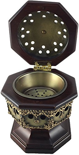 Exquisite charcoal burner, beautifully handcrafted. Intricate golden design laid over rich wooden texture give this burner a touch of elegance and beauty. A golden hinge make sure the lid stays out of your way when needed.Feature
