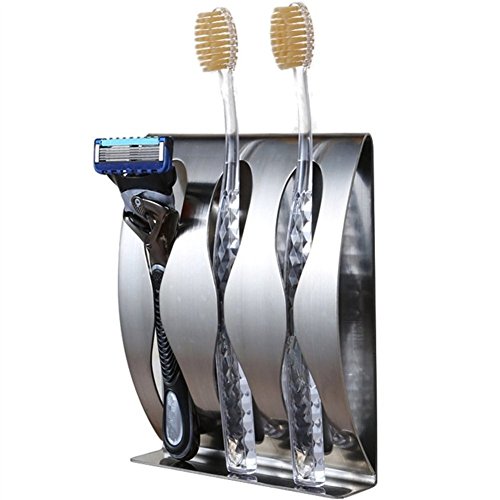 Everyspace 3-Seat Toothbrush Holder, 3M Self-Adhesive Wall Mount 304 Stainless Steel Tooth Brush Holes for Bathroom Bath Shaving Razor Stand