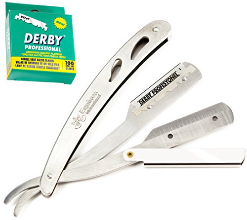 Equinox Professional Straight Edge Razor with 100 Single Edge Derby Blades - Close Shaving Men's Manual Shaver Safety