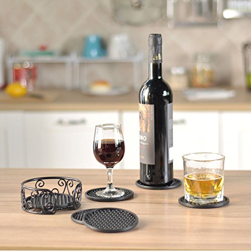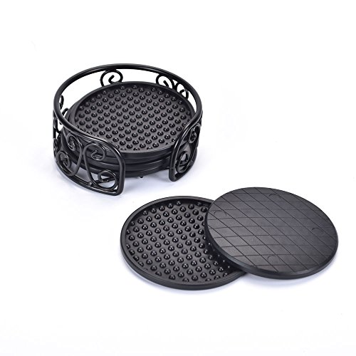 Y&M Coasters Set of 4.3 in Holder - Protect Furniture From Water Marks & Damage - Good Grip, Deep Tray, (Black)