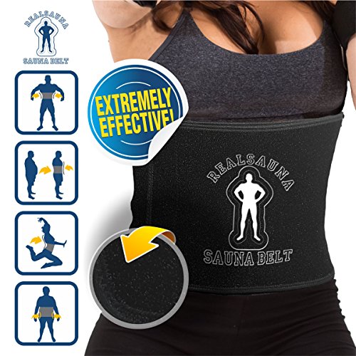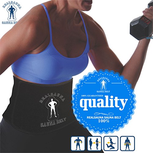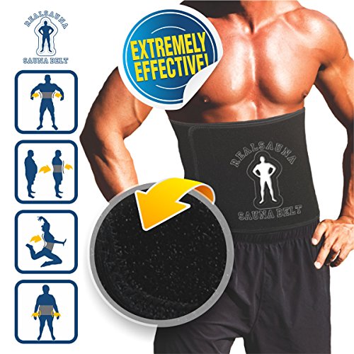 Professional Grade Sauna Belt that comes with a MONEY BACK GUARANTEE. Thick, high quality, super-flex synthetic nylon. Designed to increase core temperature. Good for targeted weight loss around the entire midsection & Ab. Advanced long and wide design prevents slipping folding or bunching up. Adjustable size allows complete coverage of the midsection, abs/torso and back. Supreme quality to helps increase sweat output around the stomach, sides, and back area. Designed for Fast Results, to eliminate unwanted inches of stomach fat, back fat & love handles. Comfortably Tone your abs, sides, and back. Smart Sizing helps you to make the most of your slimming efforts by amplifying the sweat output around midsection. Left Or Right Handed Use, Heavy Duty Wide Velcro Closure, Adjustable Contour Fit, 10" Wide (Covers Entire Mid-Section), 50" Long (Fits smallest waist up to 50"). Great back support for strenuous workouts. Enable you to Shrink midsection down 2-6 inches in less time. We are so confident that you'll love Realsauna Ab slimmer belt that we offer a 100% replacement or money back guarantee