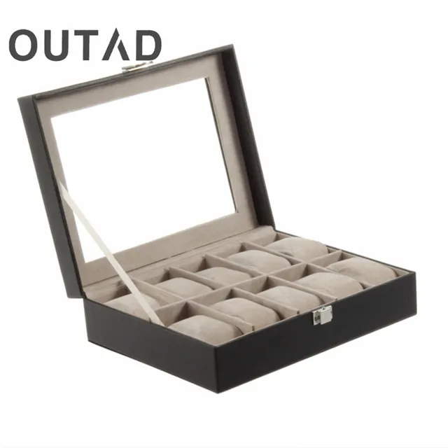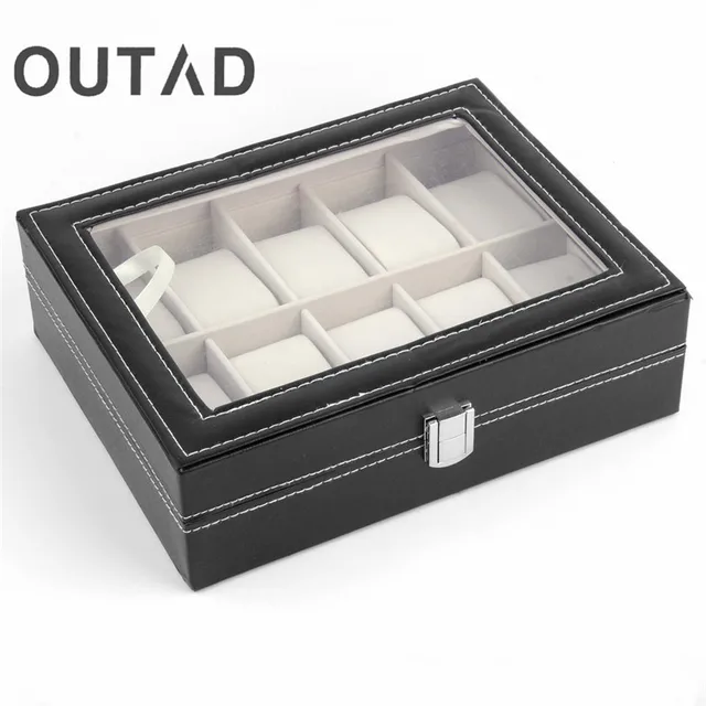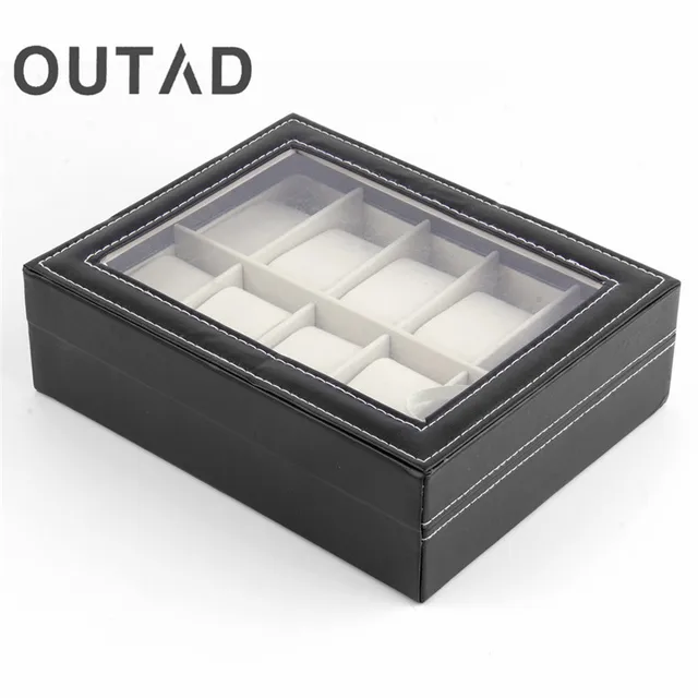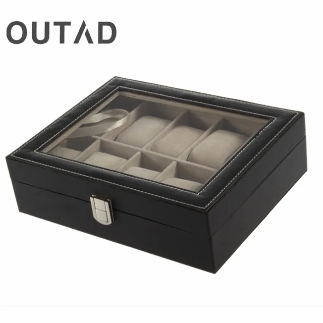 OUTAD 10 그리드 슬롯 시계 상자 고급 가죽 디스플레이 상자 시계 광장 보석 저장 케이스 주최자 홀더 relogio 2017