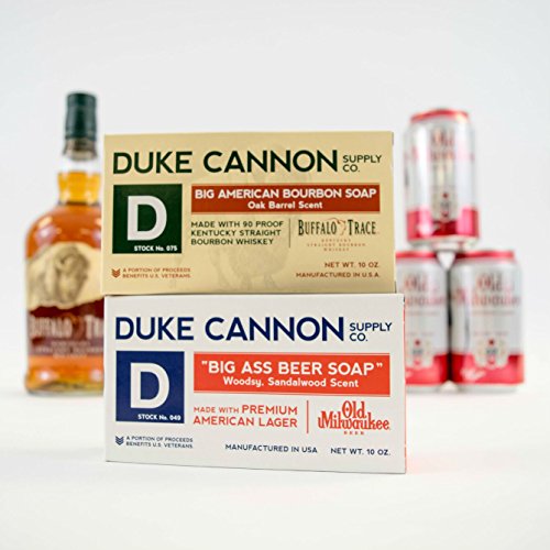 Duke Cannon Soap Set includes: (1) Duke Cannon Big American Bourbon Soap + (1) Duke Cannon Big Ass Beer Soap