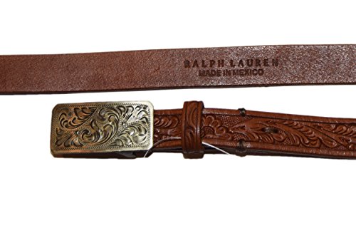 (RALPH LAUREN)/Accessories/Belts Buckles/DIRECT FROM USA/Polo Ralph Lauren Womens Tooled Western Leather Skinny Belt Brown Brass Large