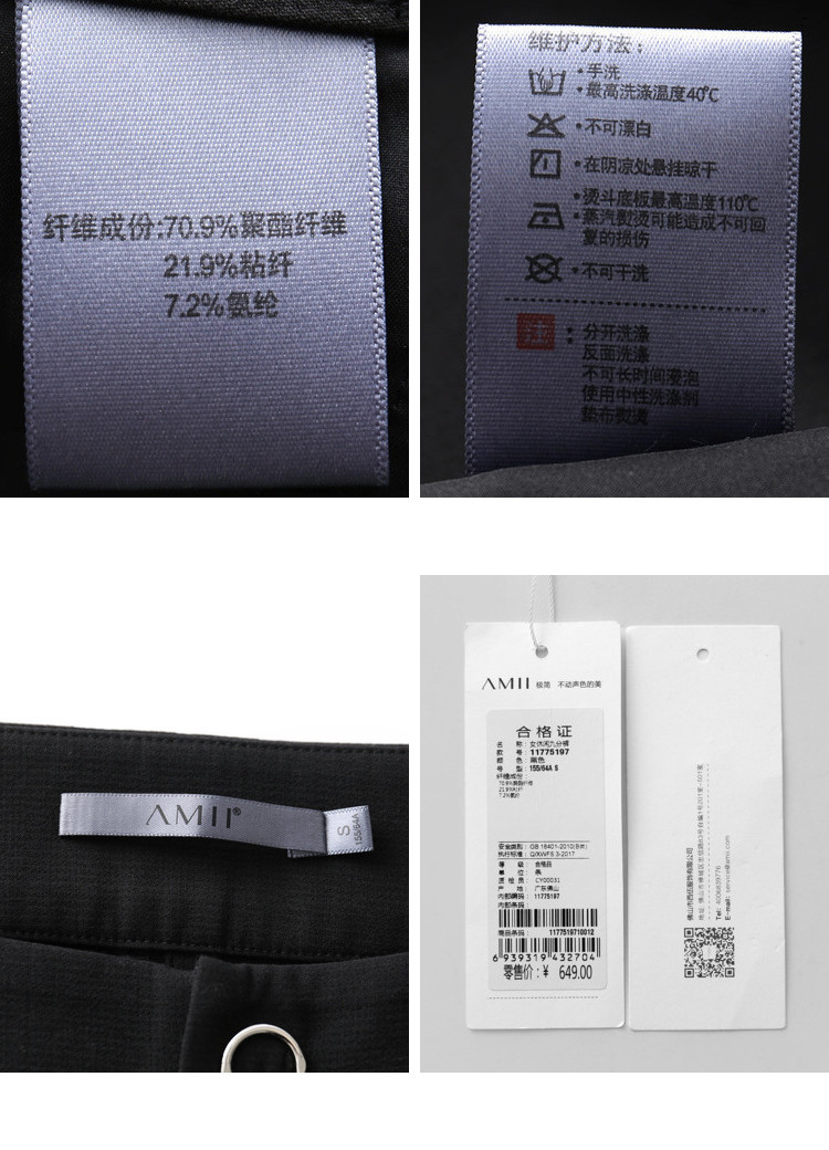 | 洗涤标准: | 悬挂晾干不可干洗不可漂白不可浸泡110℃以下垫布熨烫40℃以下手洗 |