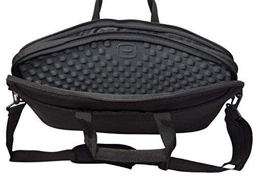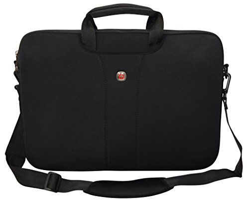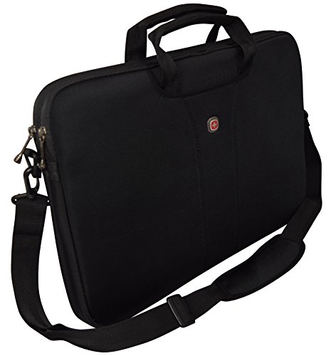 - Feature : Slim, padded notebook case provides protection to 16" / 40.6cm laptops. / Material:90% neoprene and 10% polyester. Maker of the Genuine Swiss Army Knife. / Front and rear pockets can be used to hold smaller accessories, such as keys, a phone, or a wallet. / ShockGuard System provides ensured protection to computers with a double layer of shock-absorbing padding. / Additional storage compartment is ideal for holding a power cord or other accessories. Removable shoulder strap - Padded handles feature a versatile hideaway design for a more streamlined appearance.