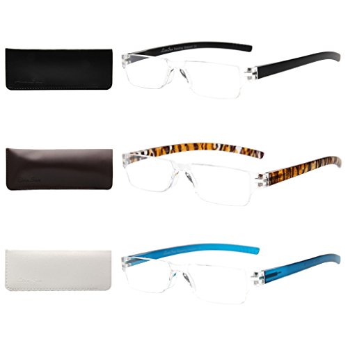LIANSAN Designer 3 Pairs Men Women Rectangle Portable Reading Glasses with Case 1.5 2.0 1.00 2.50 3.0 3.5 4.0 L2220 (+3.00)