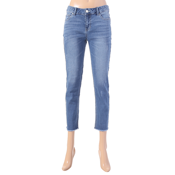 이 상품은 여성 밑단 컷팅 연청바지 입니다.
