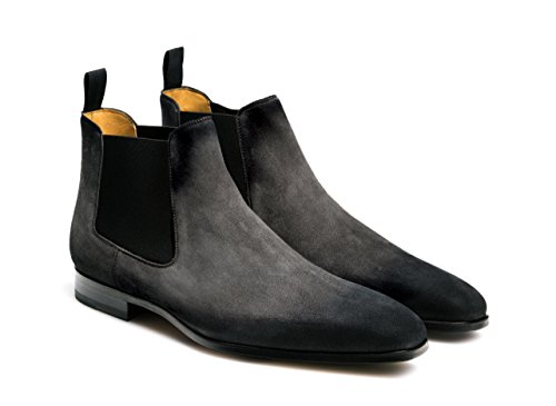 Product DescriptionHand dyed suede Chelsea boot with burnished toe0