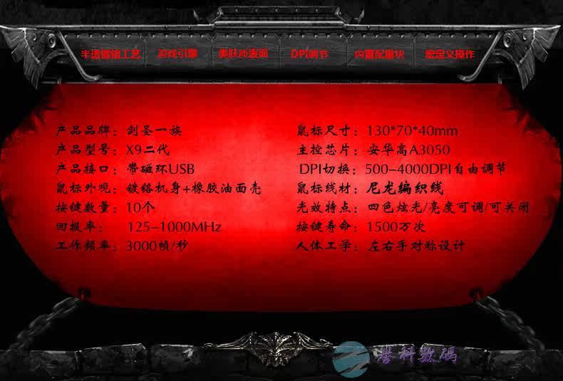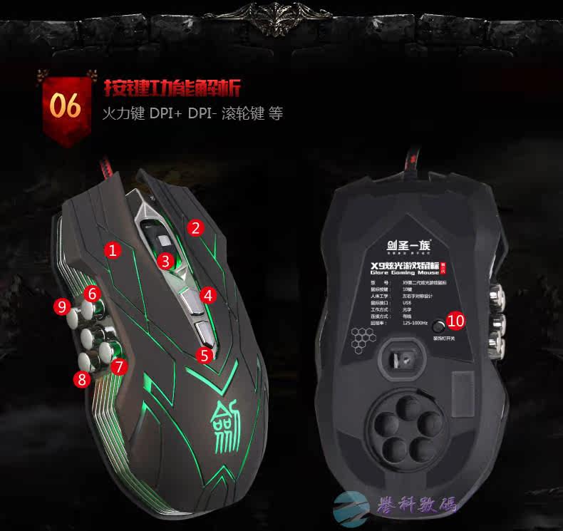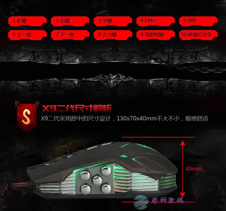 剑圣一族JS-X9魔兽世界cf lol电竞游戏专用鼠标9键有线光电滑鼠