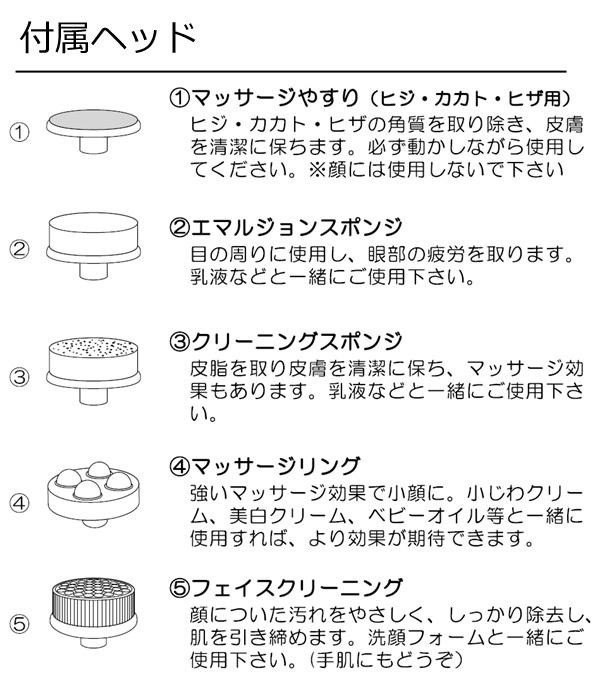 | 付属品 | ヘッド×5種 取扱説明書 保証書(保証期間:1年間) |