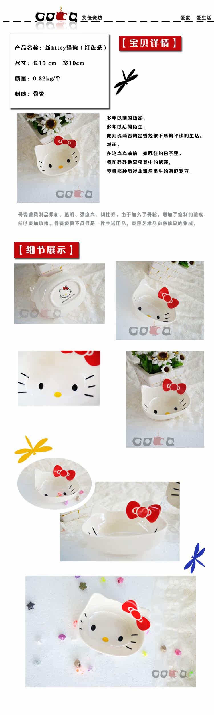 hello kitty双耳碗创意米饭碗可爱小猫 儿童KT碗微波炉适用