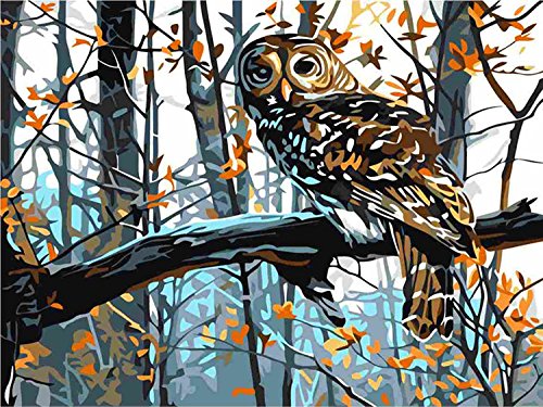 [Wooden Framed] Diy Oil Painting, Paint By Number Kit for Adult Kid-Owl 12x16 Inch