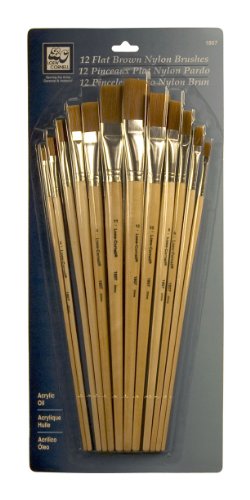 Loew Cornell 1807 12-Piece Brush Set, Taklon, Flat
