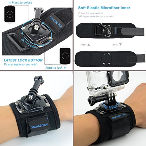 SmilePowo 360 Degree Rotatable Lock Button Elastic Velcro Wrist Strap Mount,Arm Belt And GOPRO Wrench for GORPO Camera series,Sports Action Camera - Black