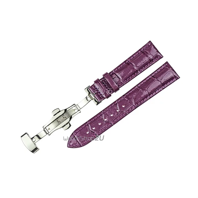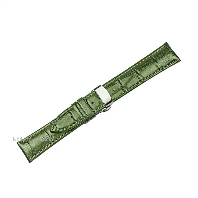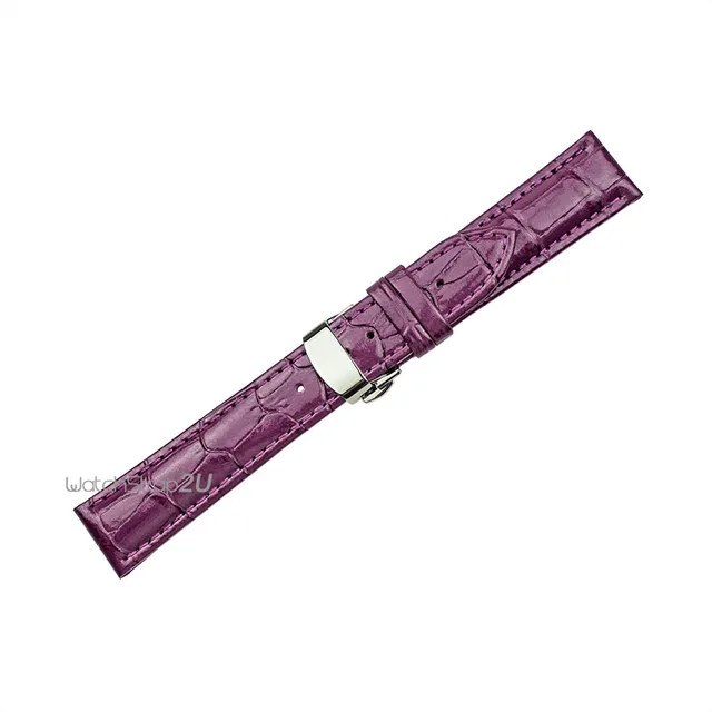 핑크 퍼플 녹색 악어 곡물 가죽 시계 밴드 스트랩 손목 실버 푸시 버튼 숨겨진 배포 걸쇠 18 20 22 미리메터