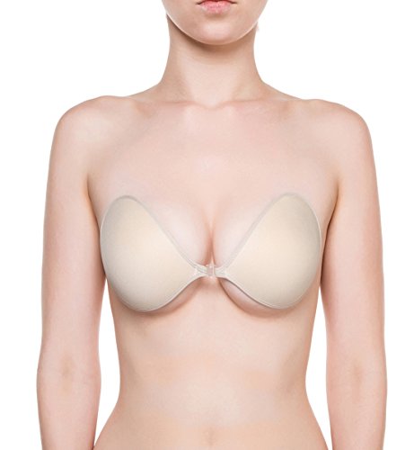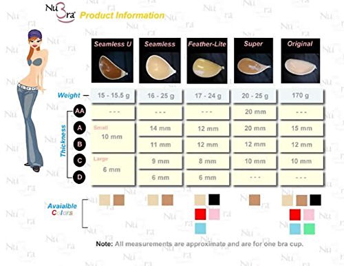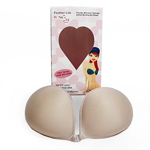 The NuBra Feather-Lite Super Light Adhesive Bra F700 is the most basic of the Nubra line. The lightweight and versatile fabric cups are perfect for wearing every day with any outfit. The center clasp allows for adjustable cleavage enhancement while the skin-friendly silicone adhesive is comfortable and reusable. Simply wash by hand with the Nubra cleanser and allow to air dry. This bra is backless and strapless, so it does not require a band measurement, just select your normal cup size.Feature