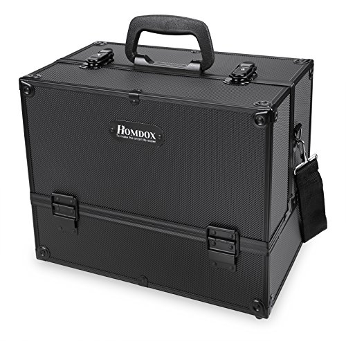 Homdox 14" Large Makeup Train Case Professional Cosmetic Box Lockable Cosmetic Organizer Makeup Box 4 Trays & Key Lock with Adjustable and Removable Dividers Fit all Cosmetics-Black