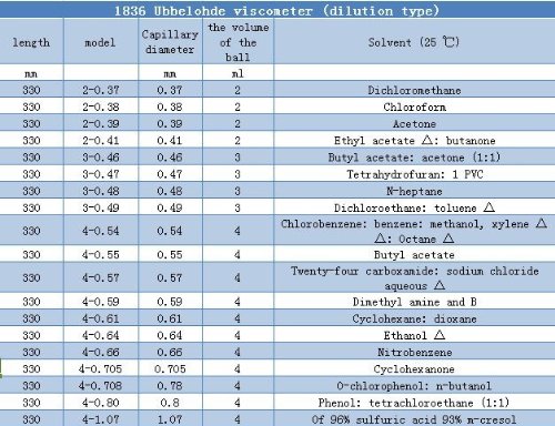 -. Title : 1836 dilution type Ubbelohde viscometer With constant forChloroform Acetone Ethyl acetate △: butanone 、 Butyl acetate: acetone (1:1) Tetrahydrofuran: PVC N-heptane Dichloroethane: toluene