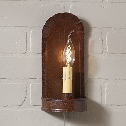 -. Brand : Irvin's Country Tinware -. Color : Rustic Tin -. EAN : 0813007022803 -. Feature : Measures 10-Inch high and 4.5-Inch wide and 3.5-Inch deep / Direct hardwire; 1 candelabra socket, 1 x 60 watts maximum wattage / UL listed for dry locations / Made in the USA -. Label : Irvin's Country Tinware -. Manufacturer : Irvin's Country Tinware -. MPN : 6WRT -. PackageQuantity : 1 -. PartNumber : 6WRT -. ProductGroup : Lighting -. ProductTypeName : HOME_LIGHTING_ACCESSORY -. Publisher : Irvin's Country Tinware -. Size : 10 x 4.5 x 3.5 x Inch -. Studio : Irvin's Country Tinware -. Title : Fireplace Sconce in Rustic Tin, wired -. UPC : 813007022803
