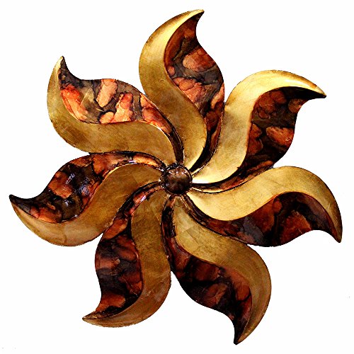 Heather Ann Creations Starburst Flower Shaped Modern Metal Hanging Decorative Wall Panel, 23.2"H x 23.2"W, Copper/Brown/Gold