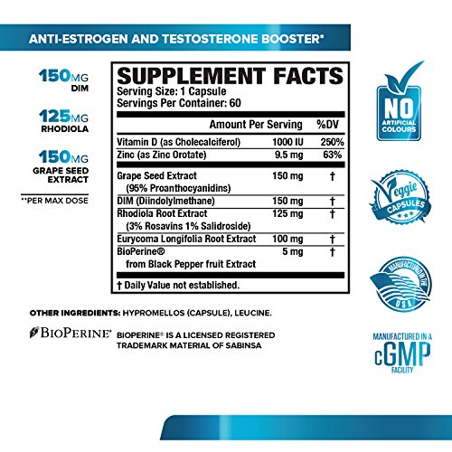 -. Title : ANDROSURGE Estrogen Blocker for Men - Natural Anti-Estrogen, Testosterone Booster & Aromatase Inhibitor Supplement - Boost Muscle Growth & Fat Loss - DIM & 6 More Powerful Ingredients, 60 Veggie Pills