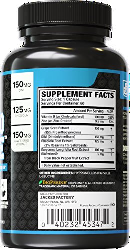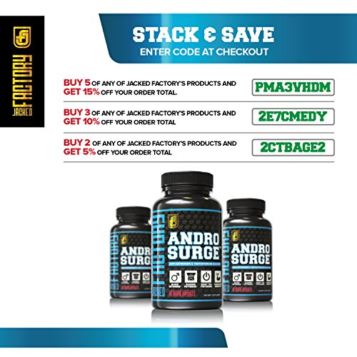 -. Feature : ▶ ELITE ESTROGEN BLOCKER FOR MEN. Androsurge is the first scientifically-dosed, non-proprietary blend, all-natural estrogen reducing supplement for men. Featuring research-supported ingredients such as grape seed extract and diindolylmethane (DIM) which have been shown in research studies to reduce estrogenic hormone and help boost free testosterone levels naturally. / ▶ BUILD MUSCLE, INCREASE STRENGTH, & BURN FAT. Optimize your estrogen and testosterone levels for maximum muscle growth & fat loss. Androsurge also works to increase muscle 'fullness' during your training and reduce muscle catabolism. / ▶ BOOST FREE TESTOSTERONE, ENERGY, VITALITY, AND LIBIDO. Free testosterone can be utilized by the body and put to use, but testosterone bound to SHBG is rather inactive. Androsurge helps boost your overall energy levels so you can power through your day, workout sessions, & life with a sense of vitality you've never felt before. Feel an improvement in overall confidence, a boost in libido & sex drive, a reduction of stress, and a relentless alpha drive. / ▶ 100% MONEY-BACK GUARANTEE. We stand behind Androsurge and guarantee your satisfaction. If for any reason you don't find that Androsurge takes your results to the next level than we back it up with a no-questions-asked guarantee; if for any reason at all you aren't completely satisfied with your results from Androsurge, simply send it back within 30 days for a FULL refund. / ▶ USA MANUFACTURED IN A cGMP & NSF CERTIFIED FACILITY. All Jacked Factory products are manufactured in a state-of-the-art facility that is NSF and cGMP certified. This guarantees that users are getting nothing but the purest, safest and highest quality products on the market. We take our customers' health seriously so we will never sacrifice quality. Be confident that each bottle of Androsurge is free from impurities and tested for maximum potency.