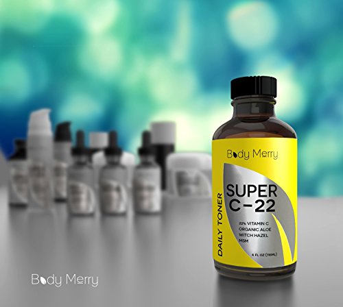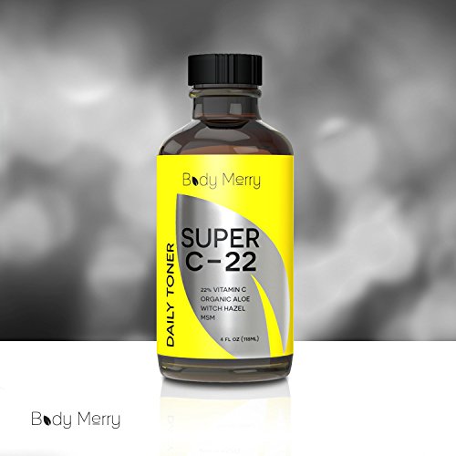 -. Feature : POWERED WITH 22% VITAMIN C - Give your skin a chance to glisten with our Super C-22 Toner pumped with 22% vitamin C, which helps to fight the signs of aging such as spots, wrinkles, discoloration and lines. With MORE VITAMIN C THAN ANY OTHER TONER or astringent available, your skin gets to soak in even more of the incredible benefits from this deeply nourishing and age-fighting ingredient. / REFRESHING & SOOTHING INGREDIENTS - Our super toner uses more power-cleansing ingredients such as witch hazel and MSM to help rid your skin of excess dirt and grime often left behind. After your face gets a rejuvenating cleanse, other elements like grapefruit seed, rosemary seed extract, camu camu berry, tamanu oil, noni, green tea, arnica, propolis, carrot oil and vitamin E work to immediately soothe your skin for a noticeable radiance you'll feel, see and love! / WHY YOU NEED A TONER - Adding our premium toner to your skincare routine can help you get clearer and more balanced skin that a regular cleanser struggles to manage on its own. Alongside of a superior face wash, a toner will help remove excess oil caused when daily pollutants disrupt the pH levels of your skin and will also help to reduce pore size so your skin can stay protected against environmental irritants. / RESTORE pH LEVELS- Skin is acidic in nature and skipping out on a quality toner can cause pH levels to be disturbed. With our alcohol-free astringent, your skin gets a chance to find balance again and reduce the amount of oil production on and around your T-zone leaving you with an even, oil-free glow. Clearer and fresher looking skin is only one step away! / SATISFACTION GUARANTEE + CRUELTY-FREE - Body Merry offers a 90-day MANUFACTURER GUARANTEE on all its products. Just contact us and we'll refund your order. You get to keep the bottle. Also, we prefer to cuddle with animals so none of Body Merry's products are tested on them. Our products are cruelty free and made right here in the USA in an FDA registered and GMP compliant facility.