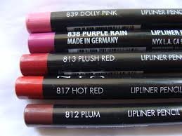 -. Title : NYX Lip & Eye Liners BLOWING KISSES Set of 5: 812 Plum, 817 Hot Red, 838 Purple Rain, 839 Dolly Pink, 844 Deep Red