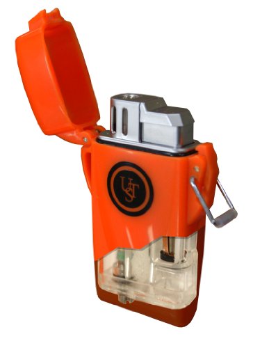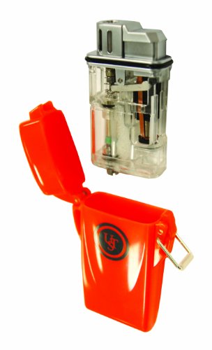Floating butane lighter with piezo-electric ignition performs without fail in the most adverse conditions. Holds.14 oz., (4g) of fuel and only weighs.8oz Measures 2.6" x 1.6" x.5" Does not ship with fuel in it, requires quadruple refined butane.Feature